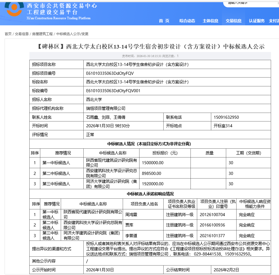 上一篇:beat365唯一官网太白校区15-16号学生宿舍初步设计(含方案设计)中标候选人公示