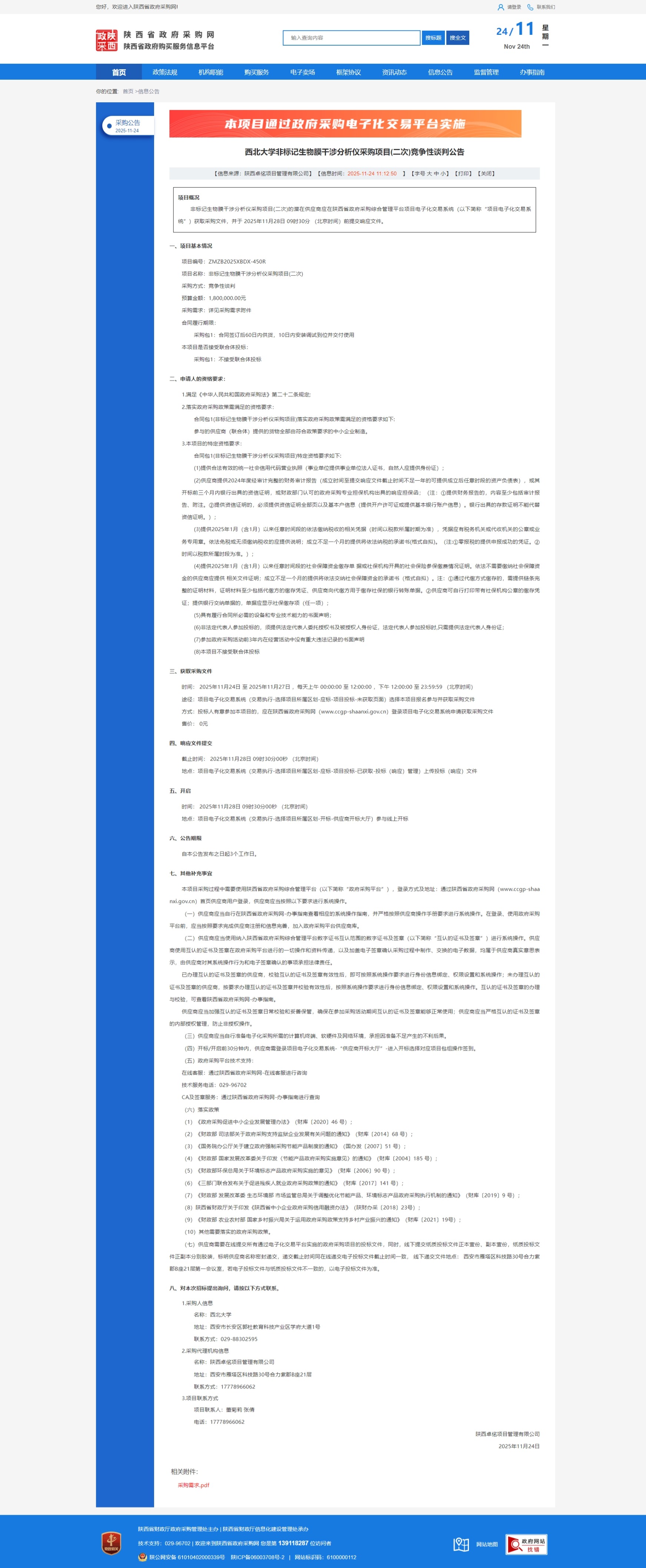 原公告链接:https://www.ccgp-shaanxi.gov.cn/freecms/site/shaanxi/ggxx/info/2025/8a69c5539a636e42019ab3afd37915be.html?noticeType=001013¬iceId=b2c05b7d-c8e5-11f0-8063-08c0eb20c666
