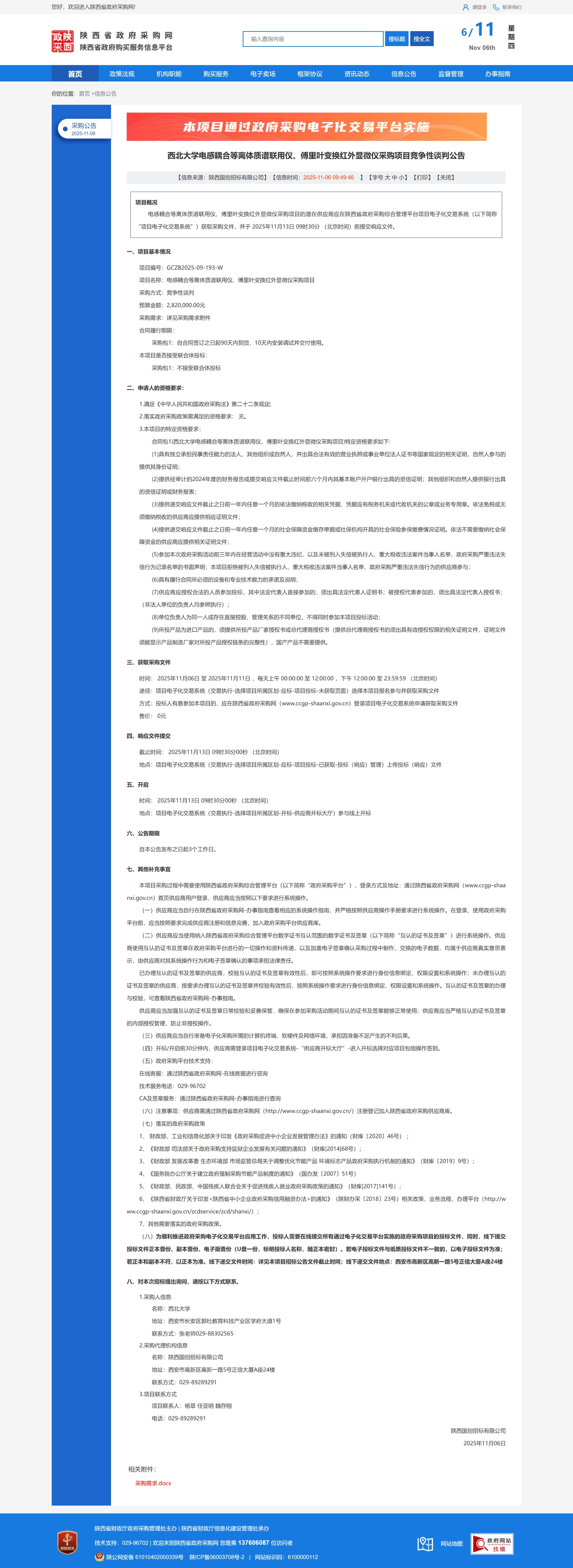 原公告链接:https://www.ccgp-shaanxi.gov.cn/freecms/site/shaanxi/ggxx/info/2025/8a69c54f99f77a8f019a56cadc9f67e3.html?noticeType=001013¬iceId=14890a6c-bab5-11f0-8063-08c0eb20c666