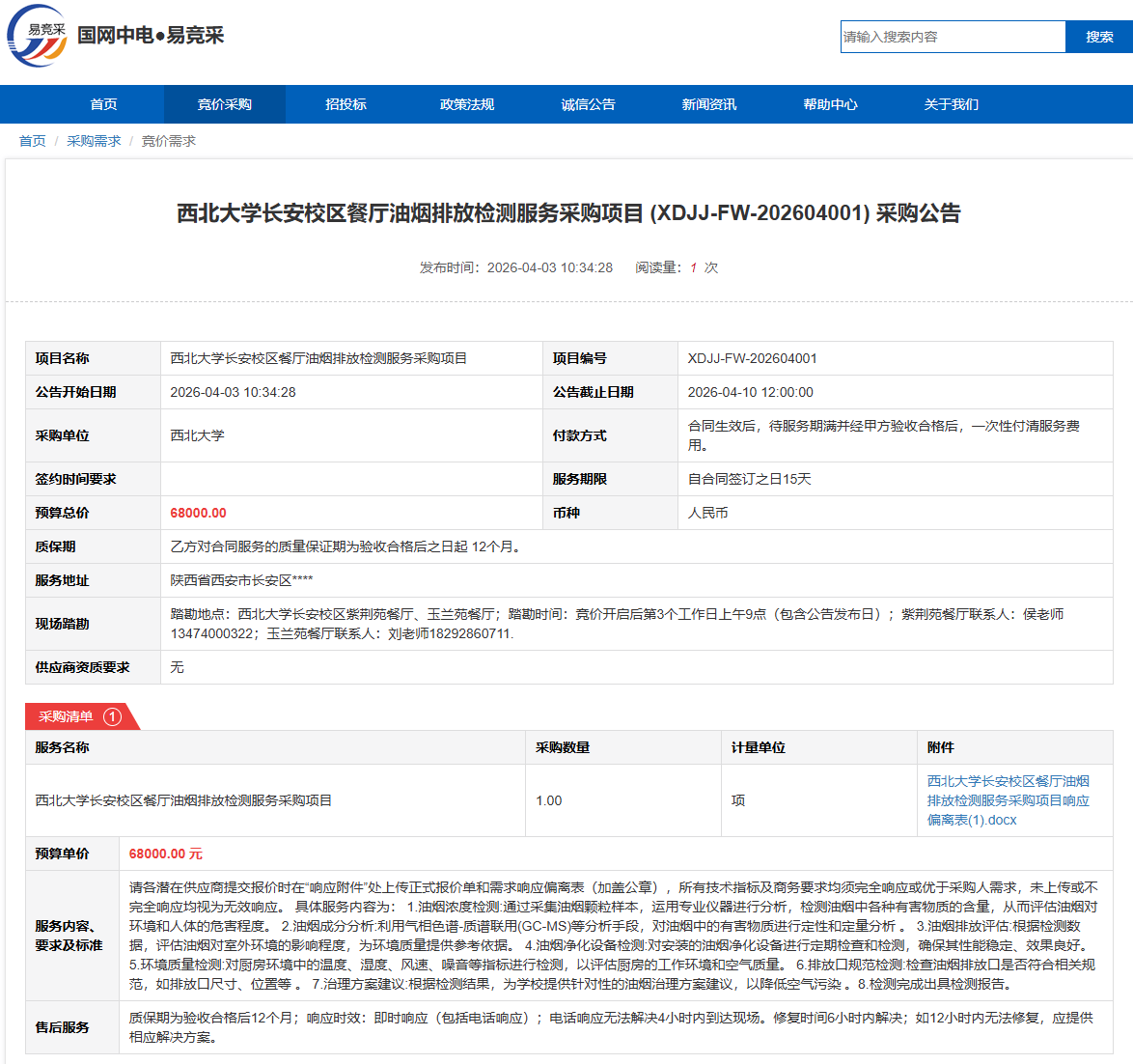 下一篇:beat365唯一官网长安校区勤育园餐厅L型冷藏慕斯蛋糕展示柜采购项目(XDJJ-HW-202603002)竞价采购公告