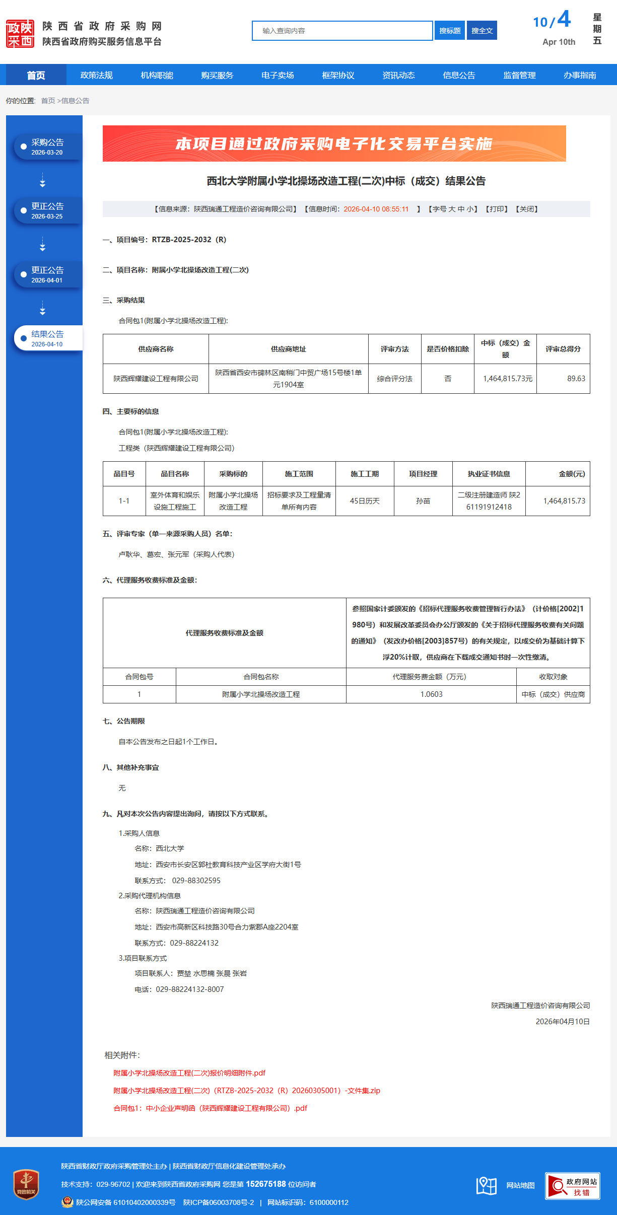 beat365唯一官网附属小学北操场改造工程(二次)中标(成交)结果公告