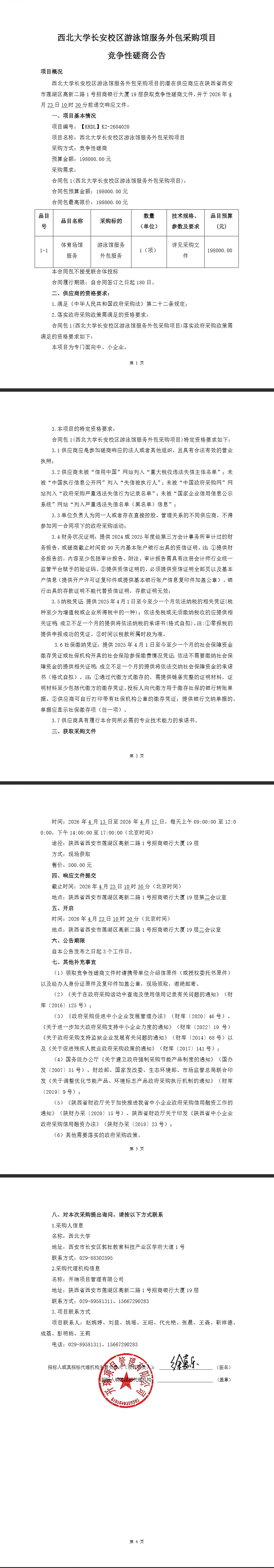 beat365唯一官网长安校区游泳馆服务外包采购项目竞争性磋商公告