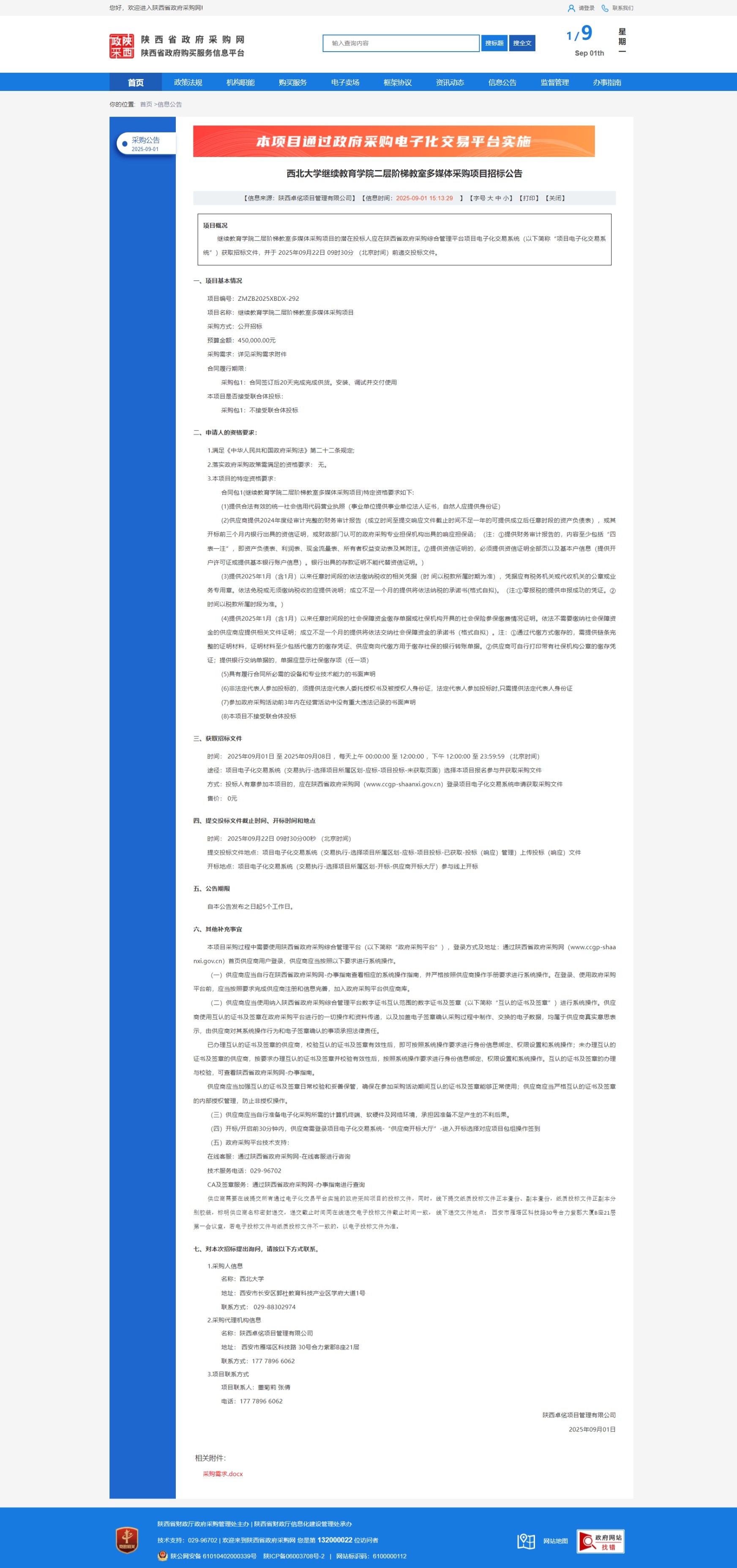 原公告链接:https://www.ccgp-shaanxi.gov.cn/freecms/site/shaanxi/ggxx/info/2025/8a69c1ef98b38d03019904154b7004a7.html?noticeType=001011¬iceId=4168f35c-8705-11f0-8063-08c0eb20c666