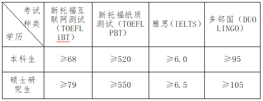 3.英语语言成绩要求(英语考试成绩单两年内有效):