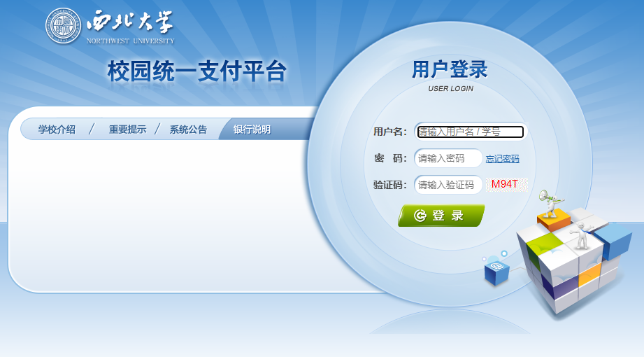 1.在线缴费。学生登录“校园统一支付平台”进行在线缴费,登录用户名为学生学号,初始密码为身份证后6位,无身份证为6个0。