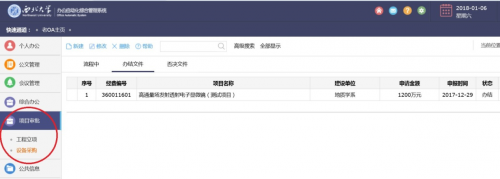 1.申报人在“项目审批”子系统中起草填表,并上传所需附件,然后依次提交审批。