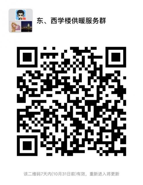 试水过程中请各单位积极配合,务必派人每个房间进行检查,若发现跑、冒、漏、管道破裂等现象,立即向报修联系人登记进行维修。为了供暖工作顺利进行,请各单位微信加入东、西学楼供暖服务群。