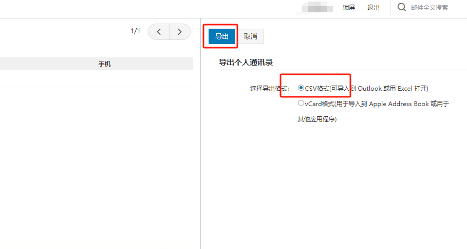 登录现有邮箱,依次点击“通讯录”->“个人通讯录”->“全选所有联系人”->“导出个人通讯录”。