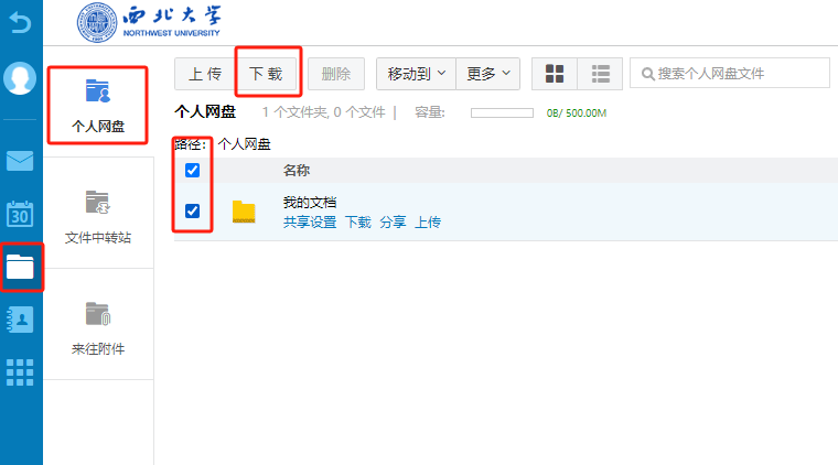 登录新版邮箱后,依次点击“云文档”->“个人空间”->“上传”->选择下载的网盘文件,点击“确定”。