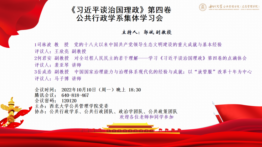 会议预告 | 《习近平谈治国理政》第四卷公共行政学系集体学习会