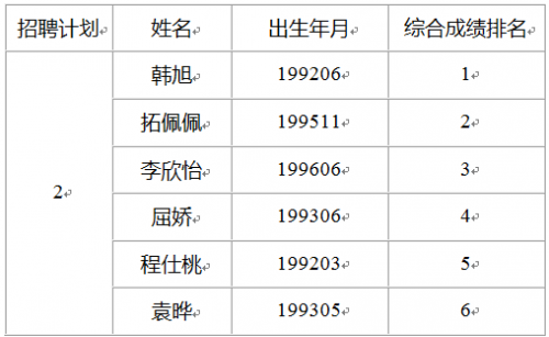 经资格审核、笔试、综合面试,现将信息学院2019年公开招聘B类人事代理行政管理人员考察结果进行公示,按成绩由高向低排序,按招聘计划1 :3的比例公示如下: