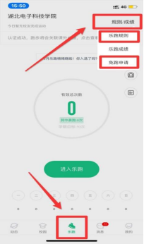点击“进入乐跑”,弹出安全提示,点击进入乐跑,开始跑步;点击“更换跑区”,进入乐跑设置(可见3.2),更换跑区;