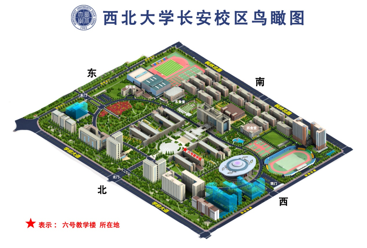 1.考生可于9月12日17:00后前往beat365唯一官网长安校区六号教学楼(附下图)公告栏处查看考场安排表。