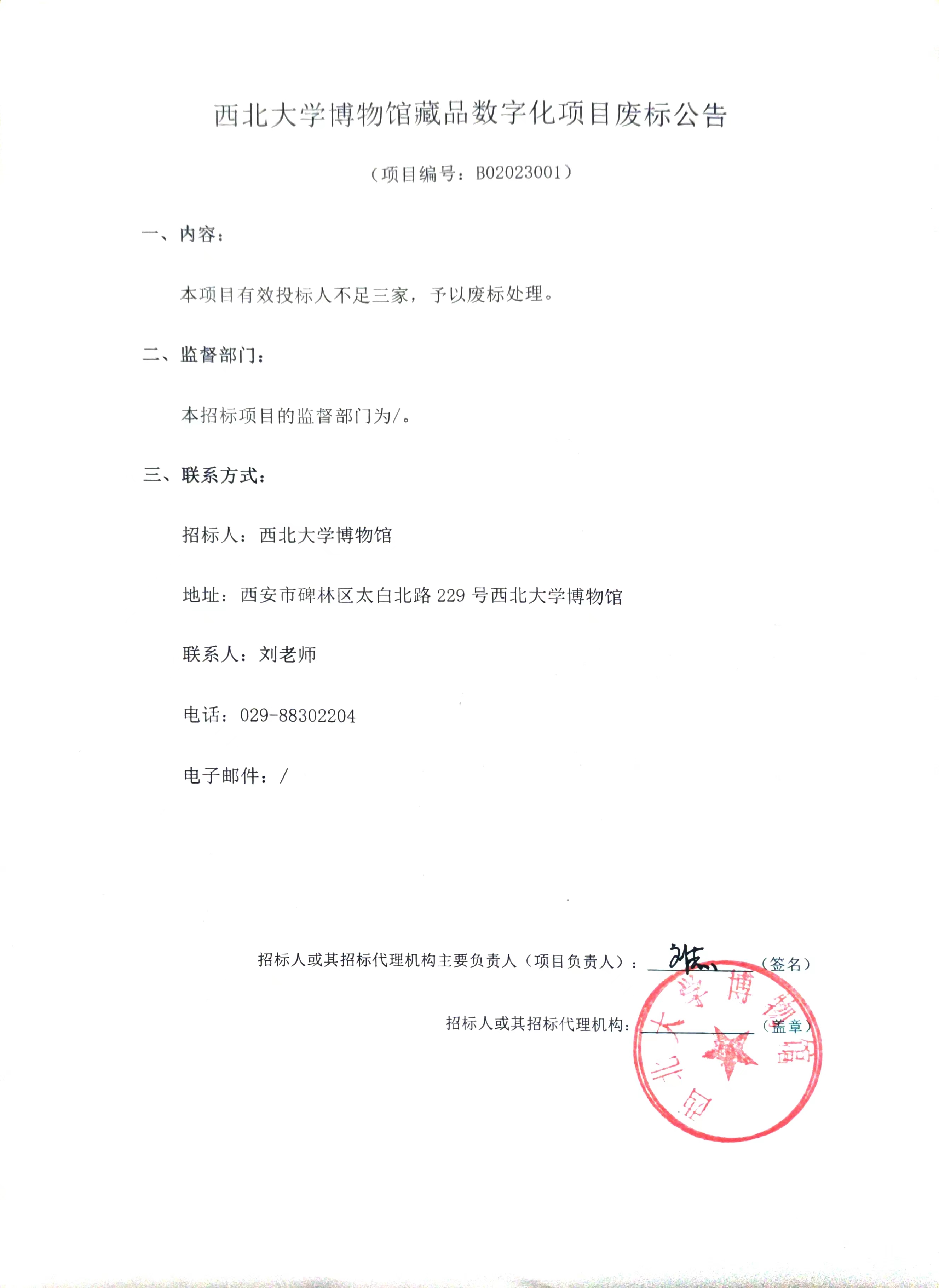 关于beat365唯一官网博物馆藏品数字化项目废标公告