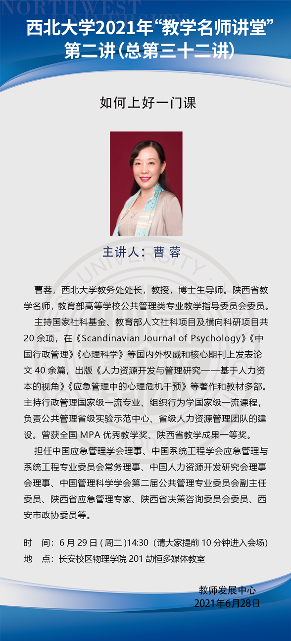 2021年教学名师讲堂第二讲 —— 如何上好一门课