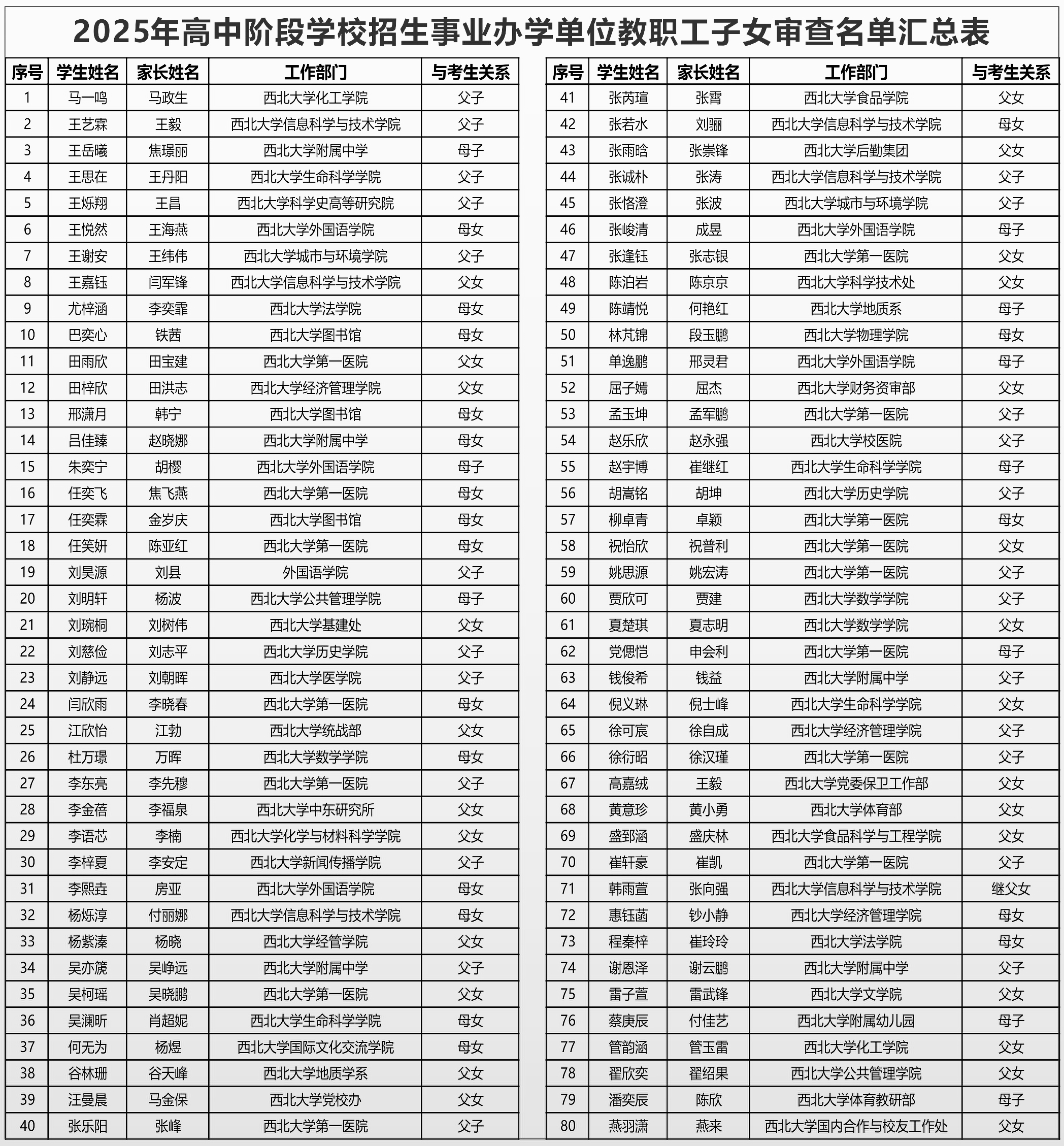 根据市、区教育局通知及要求,beat365官网于2025年5月13日开展2025年高中阶段学校招生beat365唯一官网正式事业编制的教职工直系初中应届毕业子女审查工作。经大学人力资源部门、纪检部门审核,通过名单如下(按学生姓氏笔画数排序):