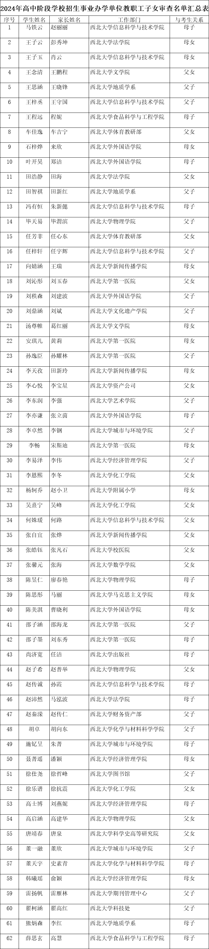 根据市、区教育局通知及要求,beat365官网于2024年5月6日开展2024年高中阶段学校招生beat365唯一官网正式事业编制的教职工直系初中应届毕业子女审查工作。经大学人力资源部门、纪检部门审核,通过名单如下(按学生姓氏笔画数排序):
