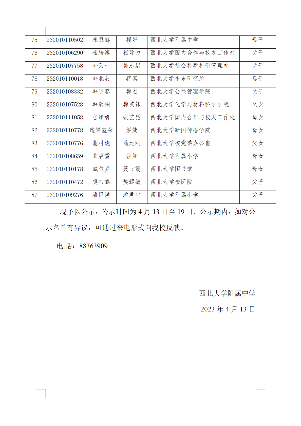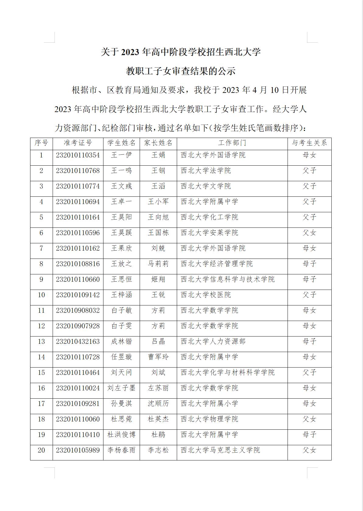 关于2023年高中阶段学校招生beat365唯一官网教职工子女审查结果的公示